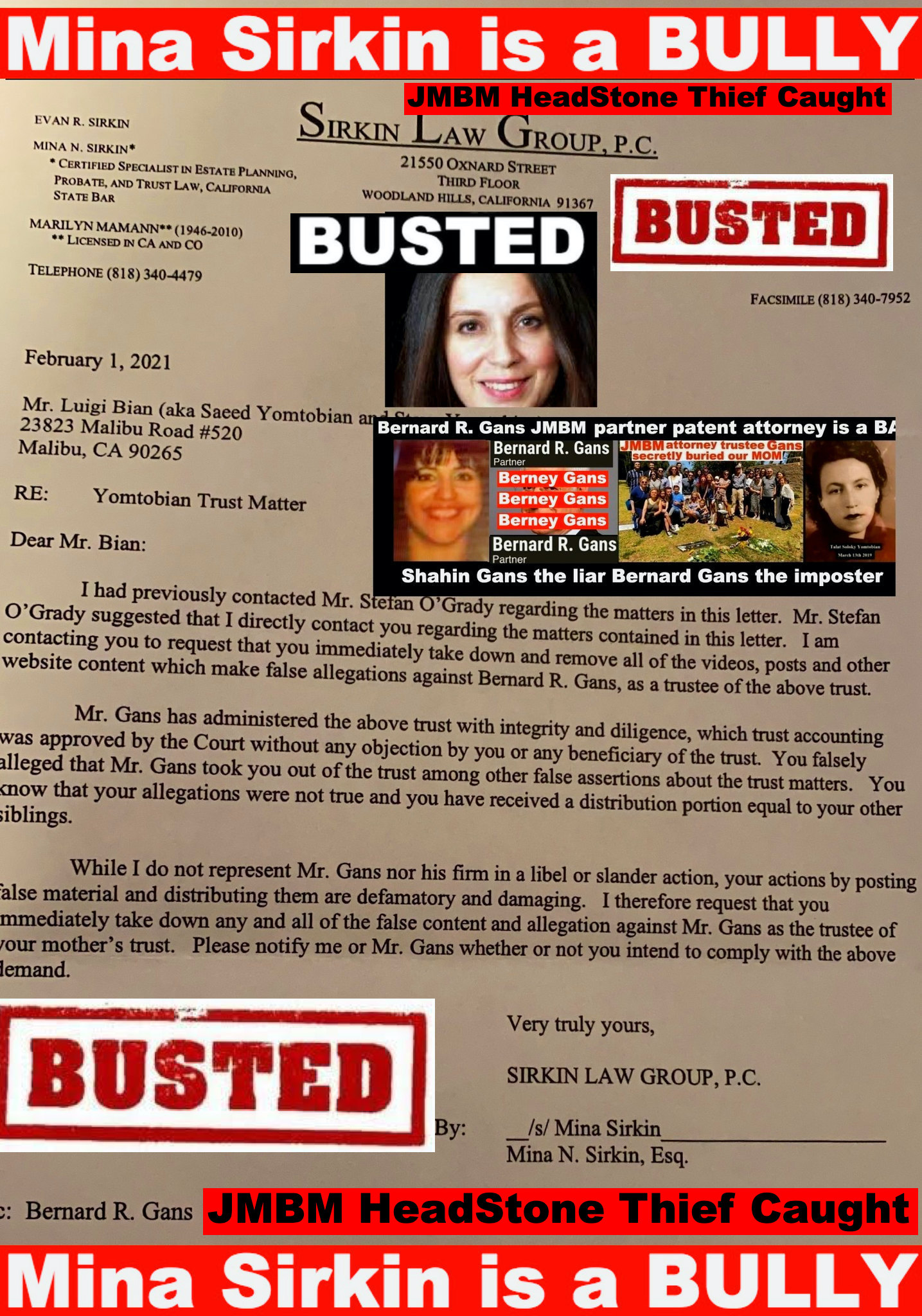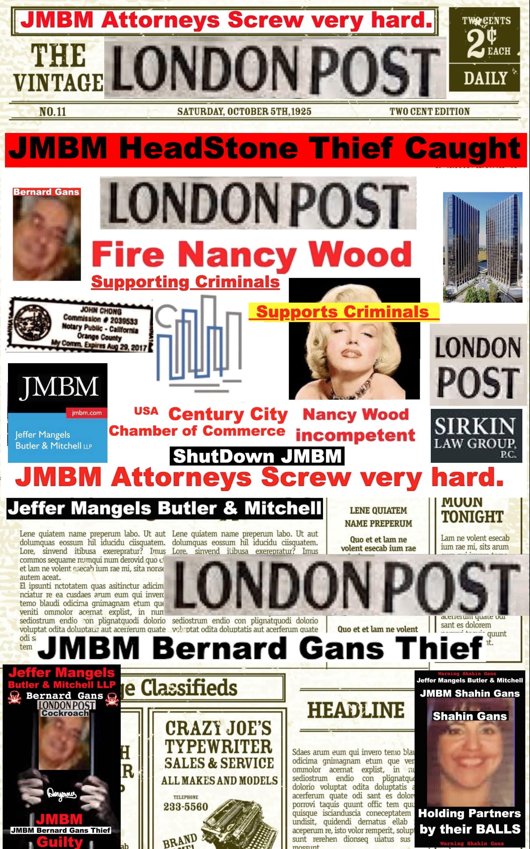 Century City Police 90067 Department JMBM attorney Thief Bernard R. Gans Jeffer Mangels Butler & Mitchel LLP JMBM attorney thief you have 24 hours to place the headstone or we are going to Century City Police department to report your crimes.